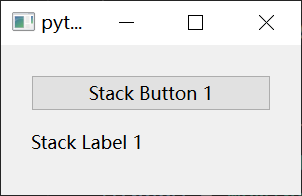 self.stack2 = QWidget() self.stack2Layout = QVBoxLayout() self.stack2Layout.addWidget(QPushButton('Stack Button 2')) self.stack2Layout.addWidget(QLabel('Stack Label 2')) self.stack2.setLayout(self.stack2Layout)