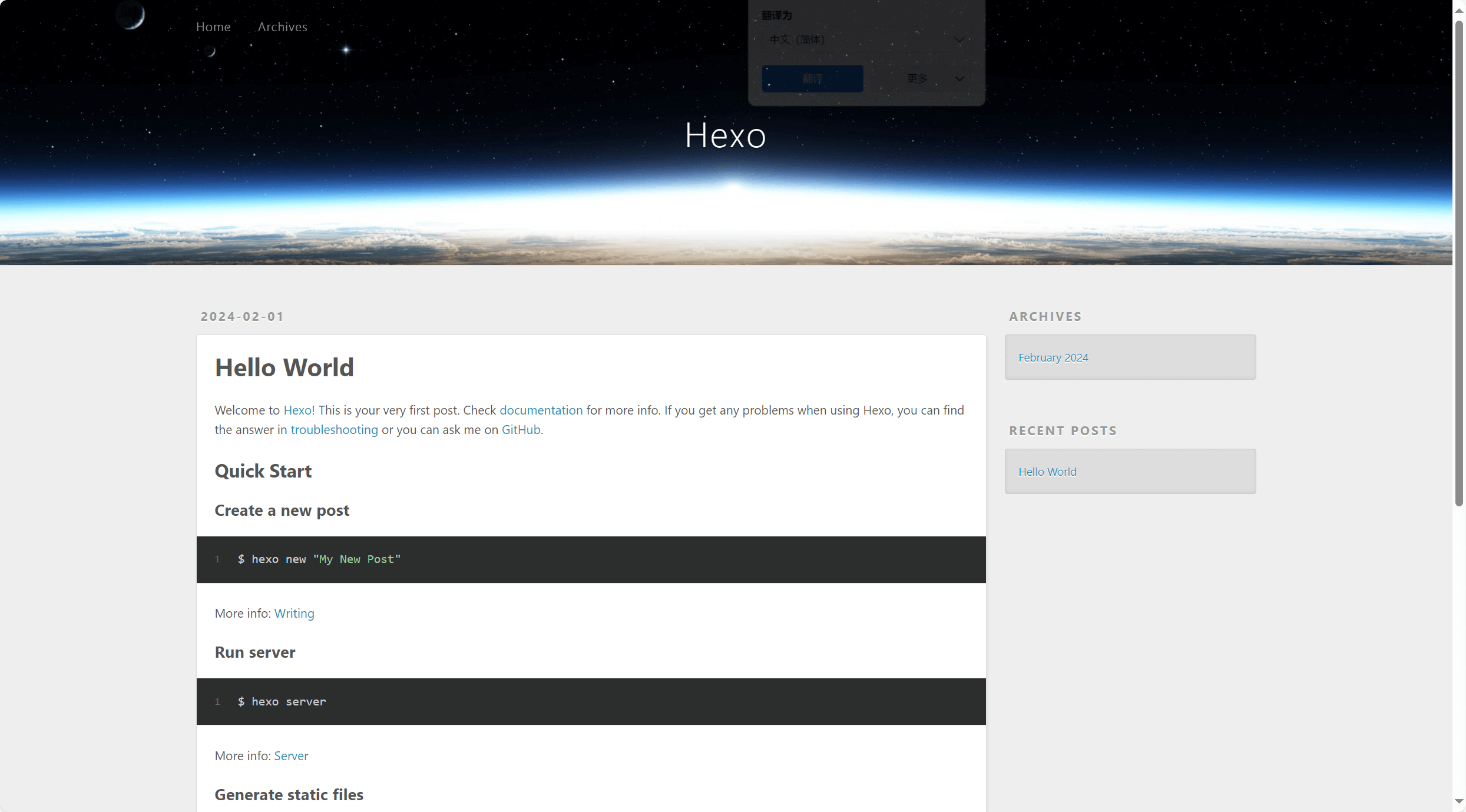 重新执行hexo三件套,验证网站是否切换到butterfly主题