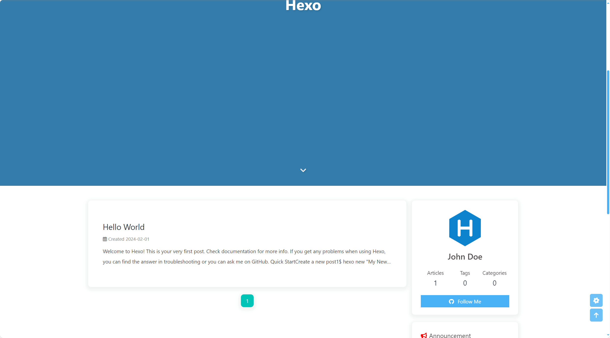 我们执行经典的hexo三件套来测试当前框架是否可用